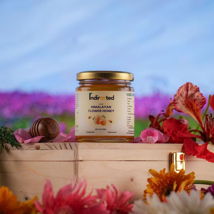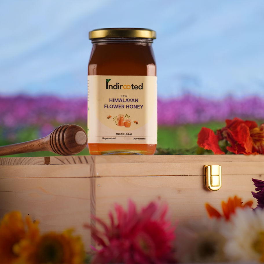A complex blend of nectar from 12–15 Himalayan flowers, this multifloral honey has a rich, layered taste with herbal and floral notes. Color ranges from light to dark amber, reflecting altitude and bloom cycles. It enhances digestion, strengthens immunity, and delivers powerful antioxidants. Truly a golden nectar from the mountains.